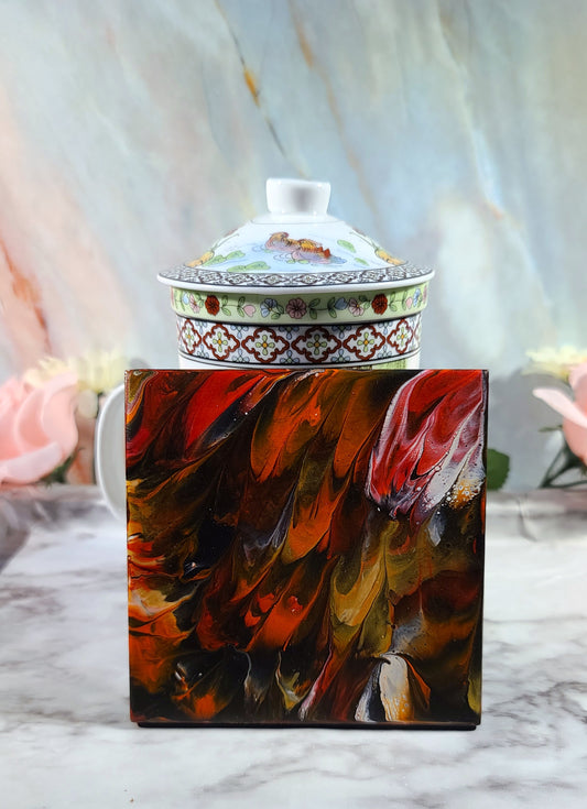 Burning Embers Dark Cosmos Handcrafted Circle Ceramic Coasters for Beverages, Cups - Heat Resistant for Mugs, Cups, Office, Kitchen, Home Decor - Cork Base Set of 4 Square