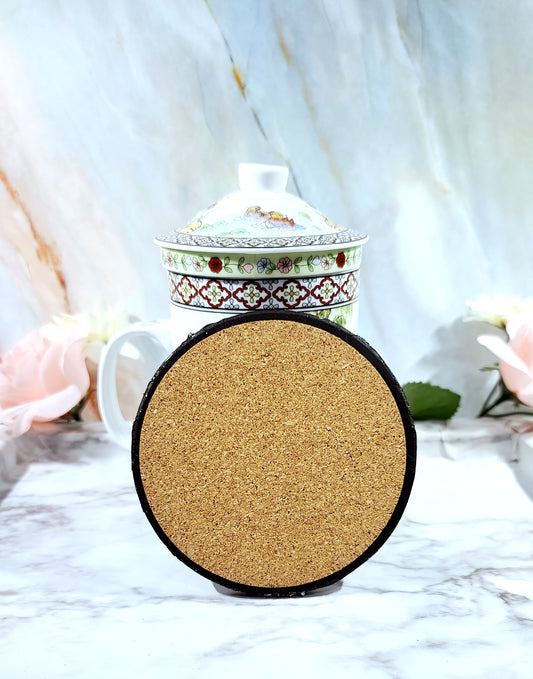 Black and Purple Handcrafted Circle Ceramic Coasters for Beverages, Cups - Heat Resistant for Mugs, Cups, Office, Kitchen, Home Decor - Cork Base Set of 4 Circle