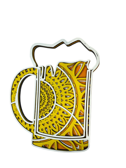3D Wooden Beer Stein Wall Art, 11 x 8 inches, 5-Layer Design, Hand-Painted