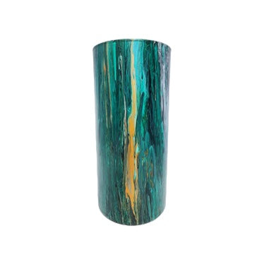 7" Cylinder Painted Glass Decorative Vase - Handmade Glass Flower Vase for Centerpieces, Décor, Flowers, Modern Home and Office Décor (Green and Gold)