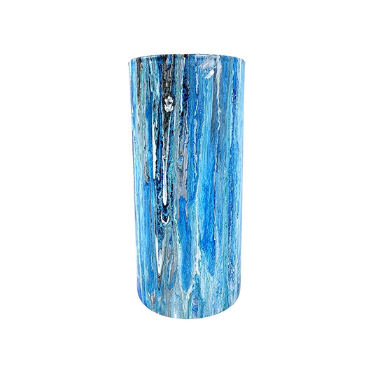 7" Cylinder Painted Glass Decorative Vase - Handmade Glass Flower Vase for Centerpieces, Décor, Flowers, Modern Home and Office Décor (Metallic Blues)
