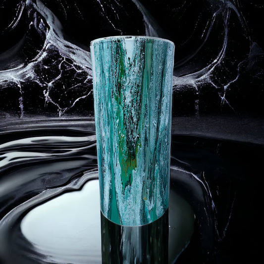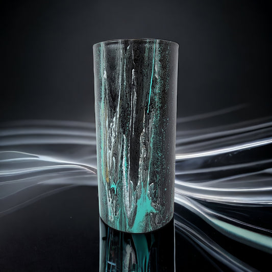 7" Cylinder Painted Glass Decorative Vase - Handmade Glass Flower Vase for Centerpieces, Décor, Flowers, Modern Home and Office Décor (Black and Teal)