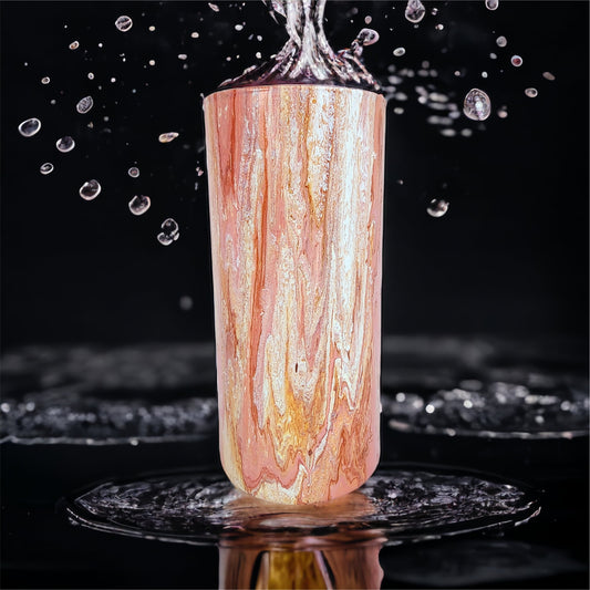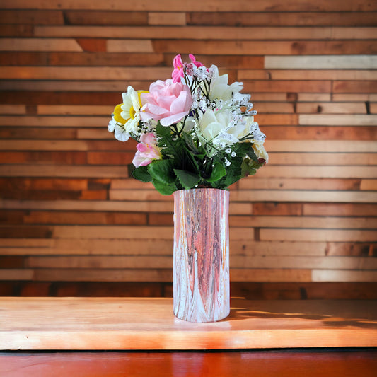 7" Cylinder Painted Glass Decorative Vase - Handmade Glass Flower Vase for Centerpieces, Décor, Flowers, Modern Home and Office Décor (Peaches and Cream)