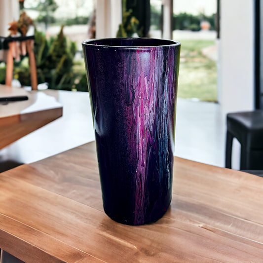 7" Cylinder Painted Glass Decorative Vase - Handmade Glass Flower Vase (Dark Purple and White)