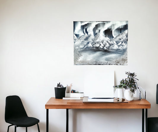 Aurora Night B&W - Original Oil Painting by WanderLost Art - Unique One of a Kind Original Canvas Paintings for Home, Office, Gift Giving 16" x 12"