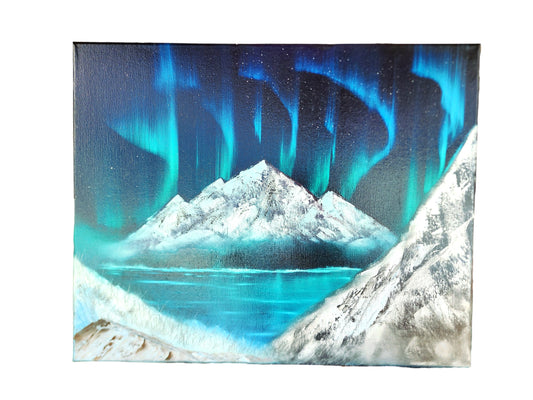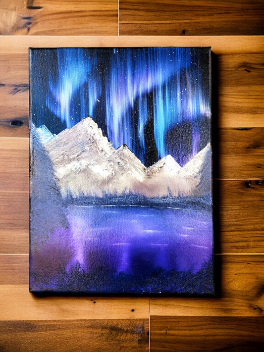 Aurora Night Blues - Original Oil Painting by WanderLost Art - Unique One of a Kind Original Canvas Paintings for Home, Office, Gift Giving 12"x16"