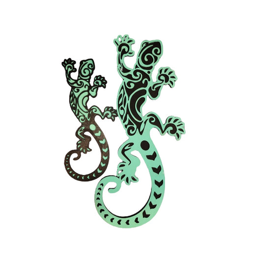 Colorful Mama & Baby Lizard Wall Art Set – 2-Piece Multilayer Wooden Décor, Handcrafted, Vibrant Black, Green, Peach, Yellow & Blue – Perfect for Nursery, Playroom, or Nature-Inspired Rooms