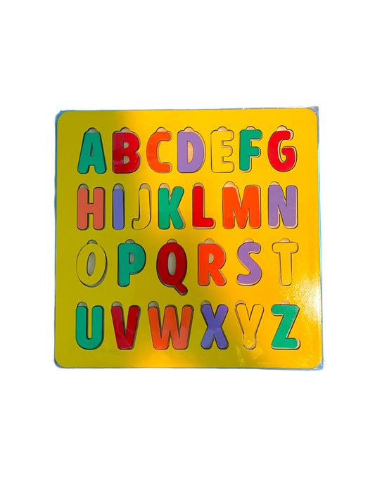 Colorful Wooden Alphabet Puzzle for Kids — 11" x 10" Montessori Learning Toy with Easy-Grip 1" Letters, Available in Painted or DIY Unpainted Versions
