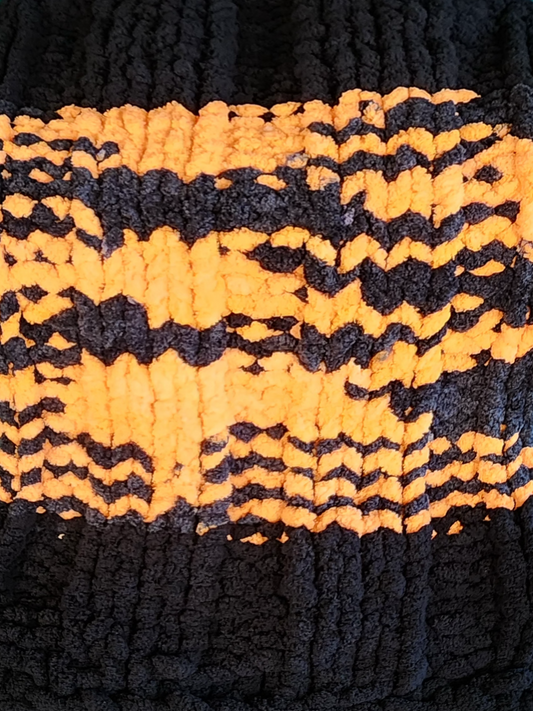 Cozy Wanderlost Kids Hand-Knit Chunky Chenille Blankets for Babies, Toddlers and Bigger Kids 38” x 55” Orange and Black