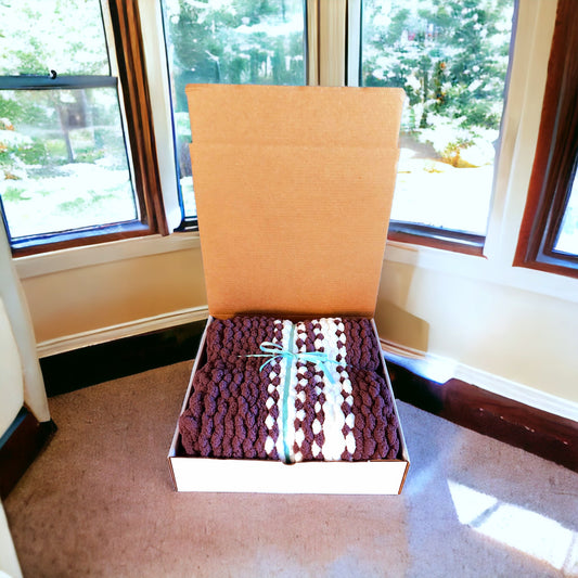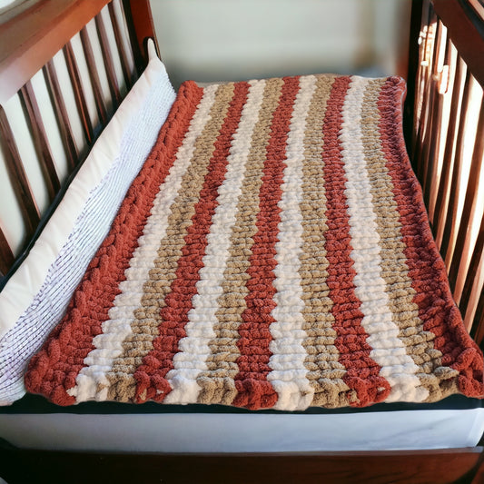 Cozy Super Soft Hand-Knit Chunky Chenille Blankets for Cribs, Baby Blanket from Wanderlost Kids 30" x 40" Mauve Stripes