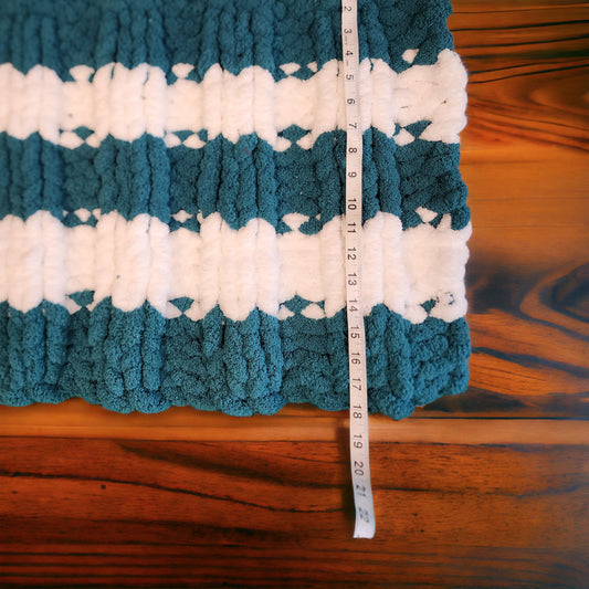 Cozy Super Soft Hand-Knit Chunky Chenille Blankets for Cribs, Baby Blanket Set from Wanderlost Kids (30" x 50"/ 18” x 20”) Teal Striped