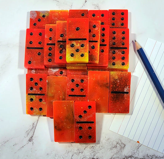 Handmade Resin Dominos - Single Set of 28 Tiles for Kids Ages 3+, Fun Educational Toy for the Classroom or Home - Fire Play Domino Set