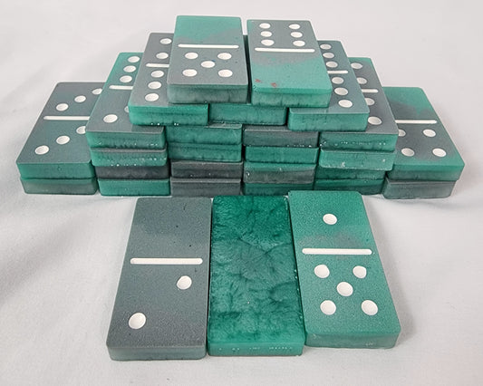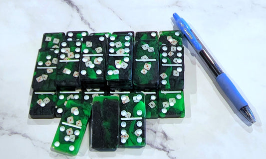 Handmade Resin Dominos - Single Set of 28 Tiles for Kids Ages 3+, Fun Educational Toy for the Classroom or Home, Excellent for Game Night or Travel - Green and Black Glow