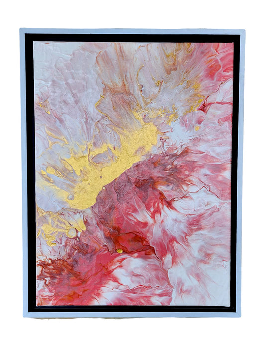 WanderLost Artz Original Canvas Paintings - Unique One of a Kind Original Canvas Painting with White Floating Frame for Home, Office, Gift Giving (Pink Gold)