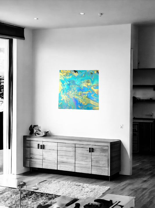 Original Canvas Paintings - Unique One of a Kind Original Canvas Paintings for Home, Office, Gift Giving (Oil Slick Green 20" x 20")