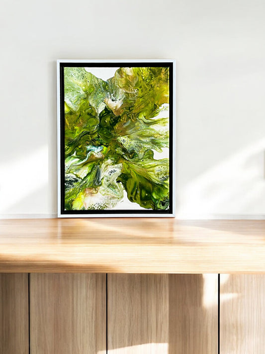 Hand-Poured Original Canvas Paintings for Home, Office, Gift Giving - 16 x 20" - "Green Splat"