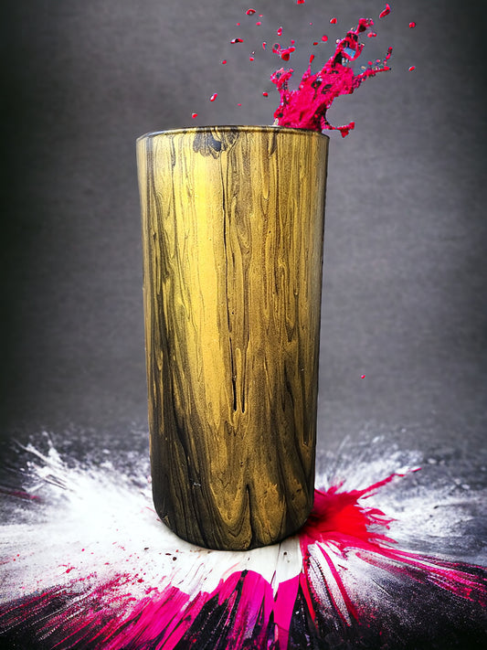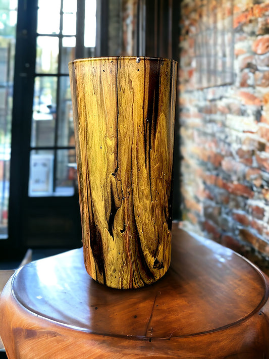 Enchanting Hand-Pour Painted Glass Flower Vase for Home & Office - 7 Inches tall- One-of-a-Kind Artistry by WanderLost Artz - Black Gold