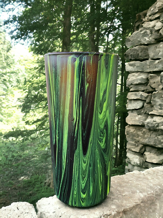 Enchanting Hand-Pour Painted Glass Flower Vase for Home & Office - 7 Inches tall- One-of-a-Kind Artistry by WanderLost Artz - Glowing Green